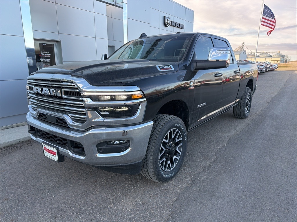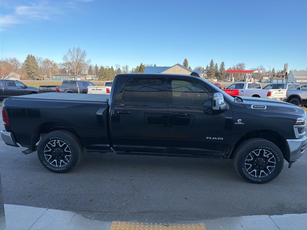 Diamond Black Crystal Pearlcoat 2025 Ram 2500 Laramie 4WD 8-Speed Automatic 6.7L I6 #1 Seat Foam Cushion, 115V Auxiliary Rear Power Outlet, 14.4" Touchscreen Display, 17 Speaker harman/kardon Premium Sound, 2 Way Rear Headrest Seat, 2nd Row In Floor Storage Bins, 4 Way Front Headrests, 4G LTE Wi-Fi Hot Spot, Active Lane Management System, Adaptive Steering System, Alexa Built-In, Anti-Spin Differential Rear Axle, Apple CarPlay, Auto Adjust In Reverse Exterior Mirrors, Auto Dim Exterior Mirror, Auto High Beam Headlamp Control, Auto Power-Folding Mirrors, Auto-Dimming Exterior Passenger Mirror, Bright Front Bumper, Bright Rear Bumper, Bucket Seats, Chrome Bumper Package, Chrome Exterior Mirrors, Clearance Lamps, Connected Travel & Traffic Services, Connectivity - US/Canada, CTR Stop Lamp w/Cargo View Camera, Cummins Turbo Diesel Badge, Disassociated Touchscreen Display, Drowsy Driver Detection, Dual Wireless Charging Pad, Emergency Vehicle Alert System (EVAS), Exterior Mirrors Courtesy Lamps, Exterior Mirrors w/Heating Element, Exterior Mirrors w/Memory, Exterior Mirrors w/Supplemental Signals, Foam Bottle Insert (Door Trim Panel), Folding Flat Load Floor Storage, Forward & Reverse Utility Lights, Front Seat Back Map Pockets, Full Length Upgraded Floor Console, Global Telematics Box Module (TBM), Google Android Auto, GPS Antenna Input, GPS Navigation, HD Radio, Heated Front Seats, Heated Steering Wheel, High Back Seats, Integrated Voice Command w/Bluetooth, Laramie Level 2 Plus Equipment Group, Leather Trimmed Bucket Seats, LED Bed Lighting, Mirror Running Lights, MOPAR Deployable Bed Step, MOPAR Spray In Bedliner, Off-Road Info Pages, Power 2-Way Driver Lumbar Adjust, Power 2-Way Passenger Lumbar Adjust, Power Adjust 8-Way Driver Seat, Power Adjust 8-Way Front Passenger Seat, Power Adjust Mirrors, Power Adjustable Convex Aux Mirrors, Power Adjustable Pedals w/Memory, Power Deployable Running Boards, Power Heated Fold Telescopic Mirrors w/Memory, Power Telescoping Mirrors, Radio: Uconnect 5 Nav w/14.4" Display, Rain Sensitive Windshield Wipers, Rear 60/40 Folding Seat, Remote Tailgate Release, Selectable Tire Fill Alert, SiriusXM Radio Service, SiriusXM w/360L, Traffic Sign Recognition, Trailer Tow Pages.
