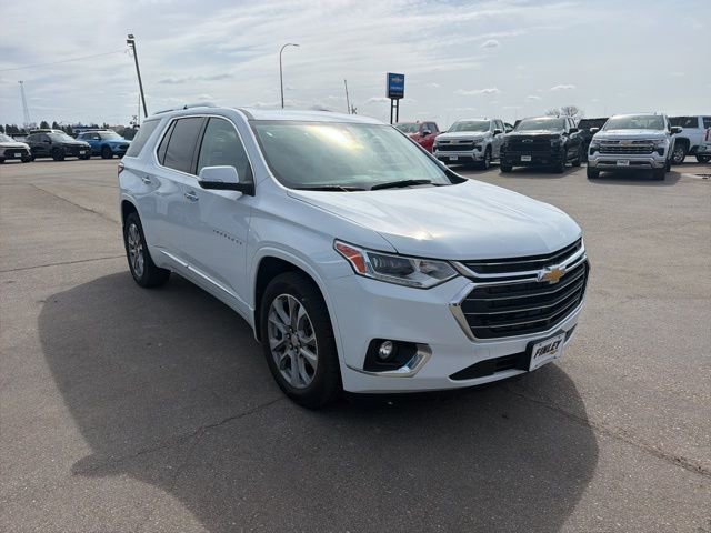 We make it EASY! Buying from Finley Motors takes the stress out of the buying process, with deals done over the phone, by email, or text, we can get the process done at your convenience! Delivery is always an option and something we can usually help with. Purchase your next vehicle from the comfort of your home, or wherever you may be and let us take care of the rest!Summit White 2021 Chevrolet Traverse Premier Recent Arrival! CARFAX One-Owner. Clean CARFAX. Odometer is 2816 miles below market average! Full tank of gas with vehicle purchase! All vehicles fully serviced inspected and ready to go. We are a small town dealer and we stand behind our vehicles and our customers!2021 Chevrolet Traverse 4D Sport Utility Premier AWD 3.6L V6 SIDI VVT 9-Speed Automatic17/25 City/Highway MPGAwards:* 2021 IIHS Top Safety Pick with optional front crash prevention and specific headlights